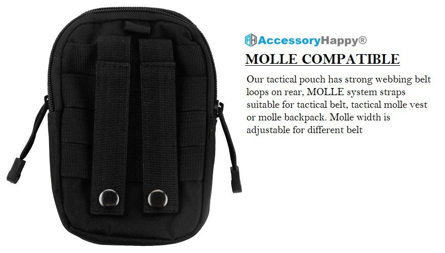 AccessoryHappy Premium Outdoor Hunting Tactical Holster Waist Cell Phone Pouch MOLE System fits Single Pistol Magazine, Knife, Flashlight, Sheath, Airsoft Hunting Ammo and Much More (Black)