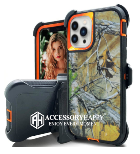 Armor Rugged Defender Case for iPhone 13 PRO Max(6.7") Protective Case with Belt Clip Holster, Heavy Duty-Orange Camo