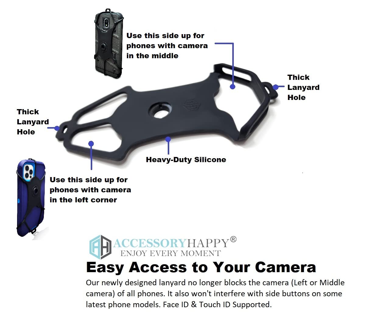 AccessoryHappy AH Universal Heavy Duty Cell Phone Carrying Lanyard Leash Neck Strap Tether Holder Quick Release Buckle Smart Cell Holder Case for iPhone, Galaxy & Most Smartphone Black