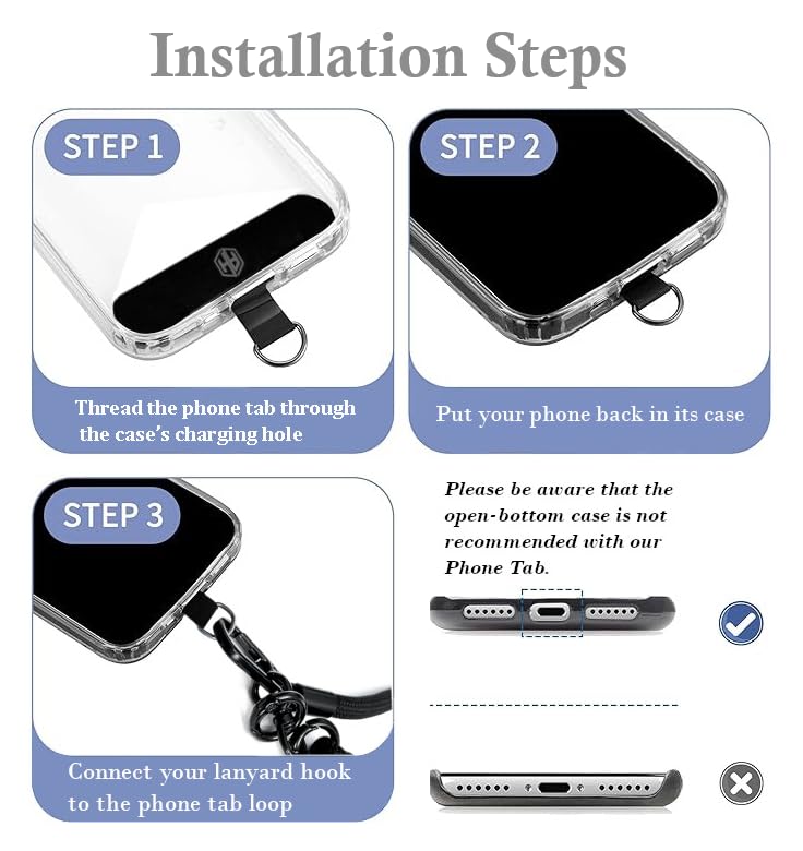 - 【Easy Installation】To use the lanyard with your phone, insert the pad through the charging hole of your fully covered phone case, plug in your phone, and connect the lanyard. Note that this setup is not compatible with half-cover phone cases.
