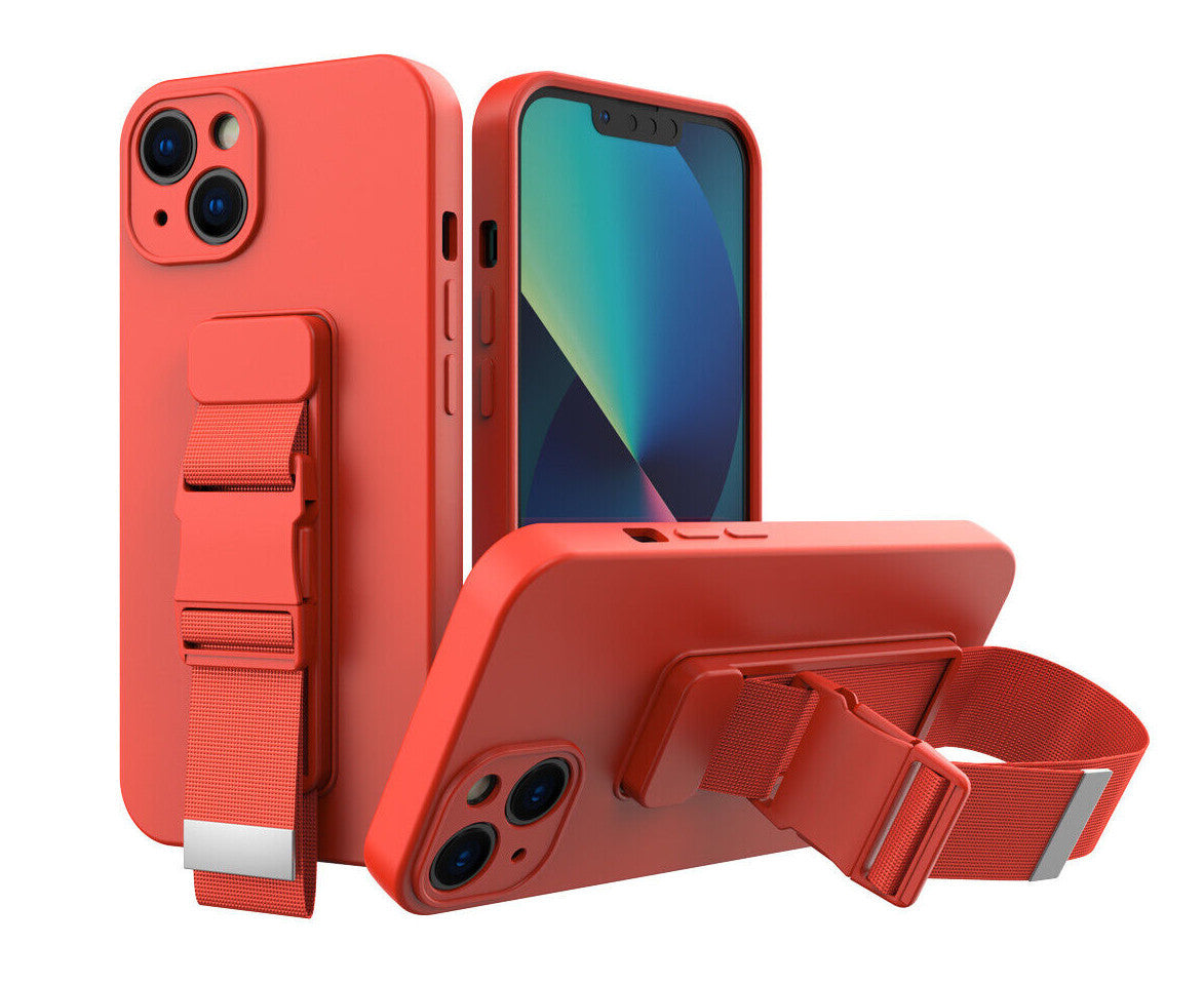 iPhone 12 Pro Max Case, 2 in 1 Durable Soft TPU Heavy Duty Shockproof Phone Protective Case Cove with Built-in Kickstand & Adjustable Strap for waist or wrist- Red
