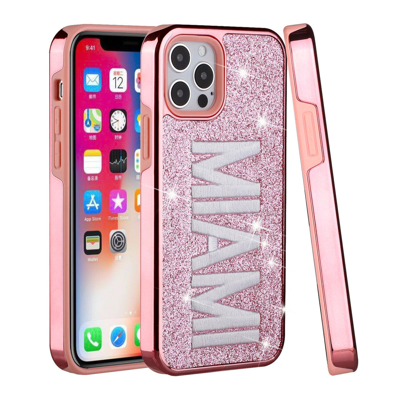 iPhone 12Pro Max (6.7") Case with Protection, 2 in 1 Durable Hard PC+Soft Silicone Heavy Duty Shockproof Glitter Full Body Phone Protective Case Cover - MIAMI
