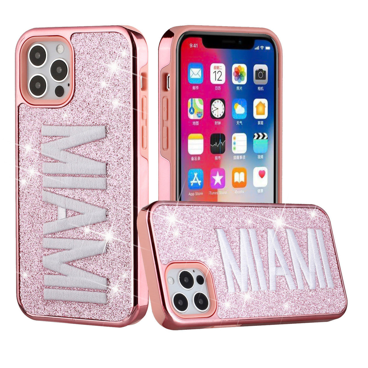 iPhone 13 Case with Protection, 2 in 1 Durable Hard PC+Soft Silicone Heavy Duty Shockproof Glitter Full Body Phone Protective Case Cover - MIAMI