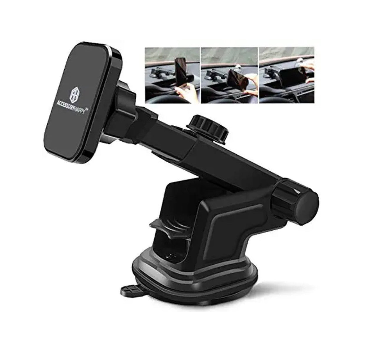 Attach a iPhone or Android phone easily to your dashboard or windshield with our AccessoryHappy versatile magnetic car holder for cell phone. Its suction cup and sticky gel layer ensure secure installation, and its telescopic arm extends and pivots for optimal view setting. Experience our powerful magnetic mount to hold your devices and add a little convenience to your everyday life. Package Included: 1 x Black Phone Magnetic Holder Mount