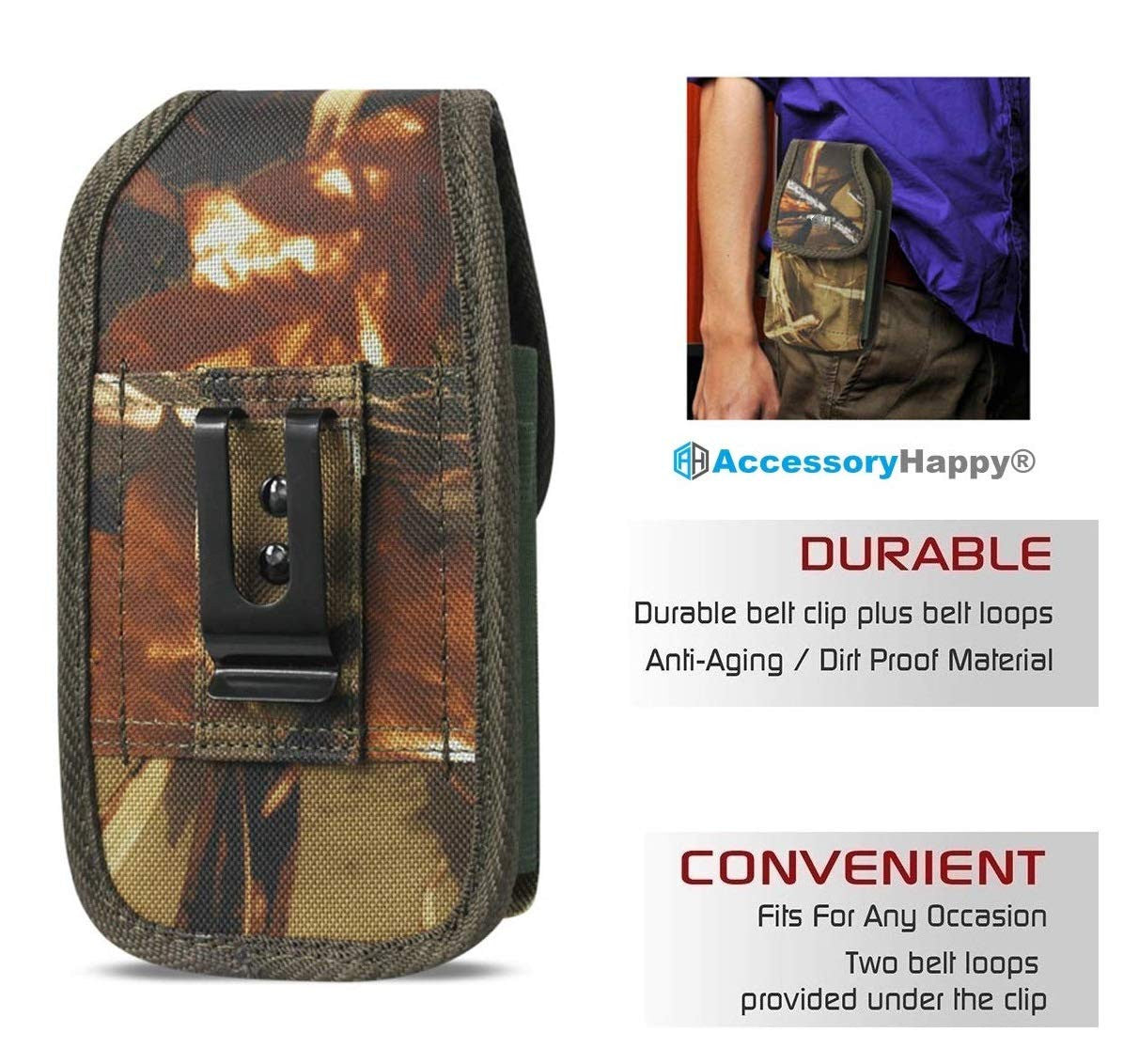 Vertical Military Grade Camo Cell Phone Belt Pouch, Rugged Canvas Holster Waist Carrying Bag Fits Phone with Waterproof/Thick Case