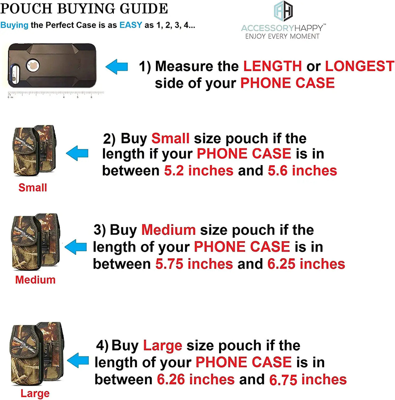 *Note: This is a universal phone pouch; the fit may vary. The Pouch fitting varies depending on the specific Phone Case you are using, the phone models listed on our website may not guarantee exact fitting. Please measure your Phone case before ordering to ensure the proper fit.