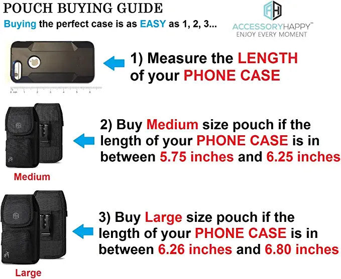 *Note: This is a universal phone pouch; the fit may vary. The Pouch fitting varies depending on the specific Phone Case you are using, the phone models listed on our website may not guarantee exact fitting. Please measure your Phone case before ordering to ensure the proper fit.