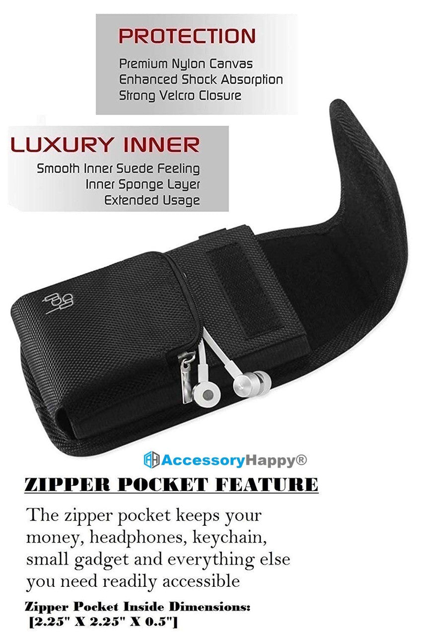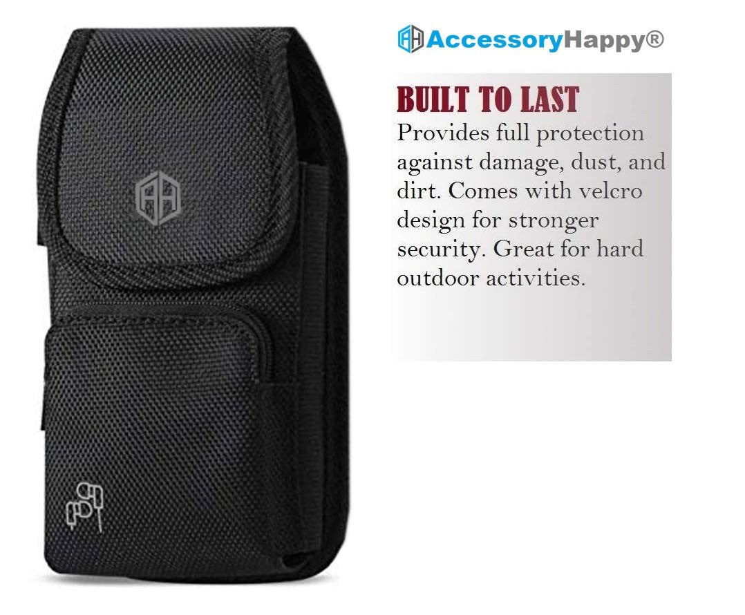 AccessoryHappy branded rugged canvas vertical case is made of high quality canvas with a great and stylish looking with soft interior. It has a strong metal clip and two belt loops (use vertically and horizontally). Stylish design with soft inner lining provides excellent protection from nicks, dirt and scratches. Don't worry about dropping your phone or leaving it somewhere. Clip it to your belt and you can secure your phone at all times.